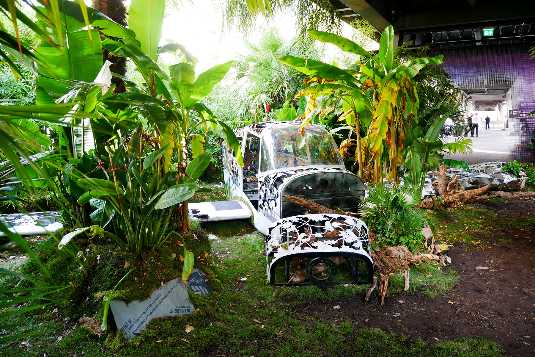 In a Gesamtkunstwerk or total work of art a multitude of scenarios range from a ruined city to unpopulated natural spaces, such as forests, seas, jungles or deserts. Installations, interactive sculptures and live performances afford the visitors a glimpse of diverse worlds while challenging every last one of their senses. The artworks take their cue from the 17 goals of sustainable development formulated by the United Nations.